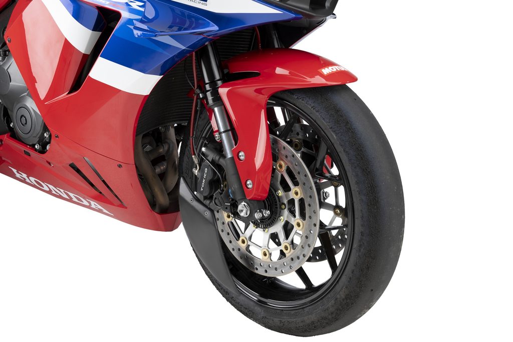Its main function is to reduce the turbulence generated around the front wheel, providing greater stability and precision, especially at high speeds or under demanding riding conditions. Thanks to this effect, the motorcycle offers more predictable handling and superior comfort for the rider.