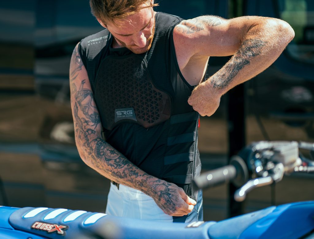 The SRG-1 is the world's first airbag vest specifically approved for motocross and enduro racing. Lightweight, breathable, and anatomically designed, it offers top-tier protection without restricting movement. Paired with the In&Motion system, it functions as an intelligent airbag that activates within milliseconds to protect vital areas.