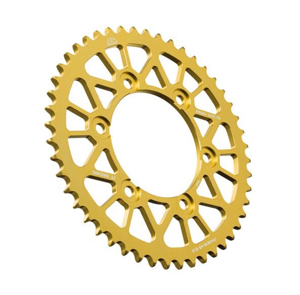 JT sprockets are made using only the best available materials. Aviation-grade 7075-T6 aluminium alloy for lightweight competition sprockets, SCM420 chromoly steel alloy for front sprockets, and we are the only sprocket manufacturer using the ultra-durable high carbon C49 steel for rear sprockets.