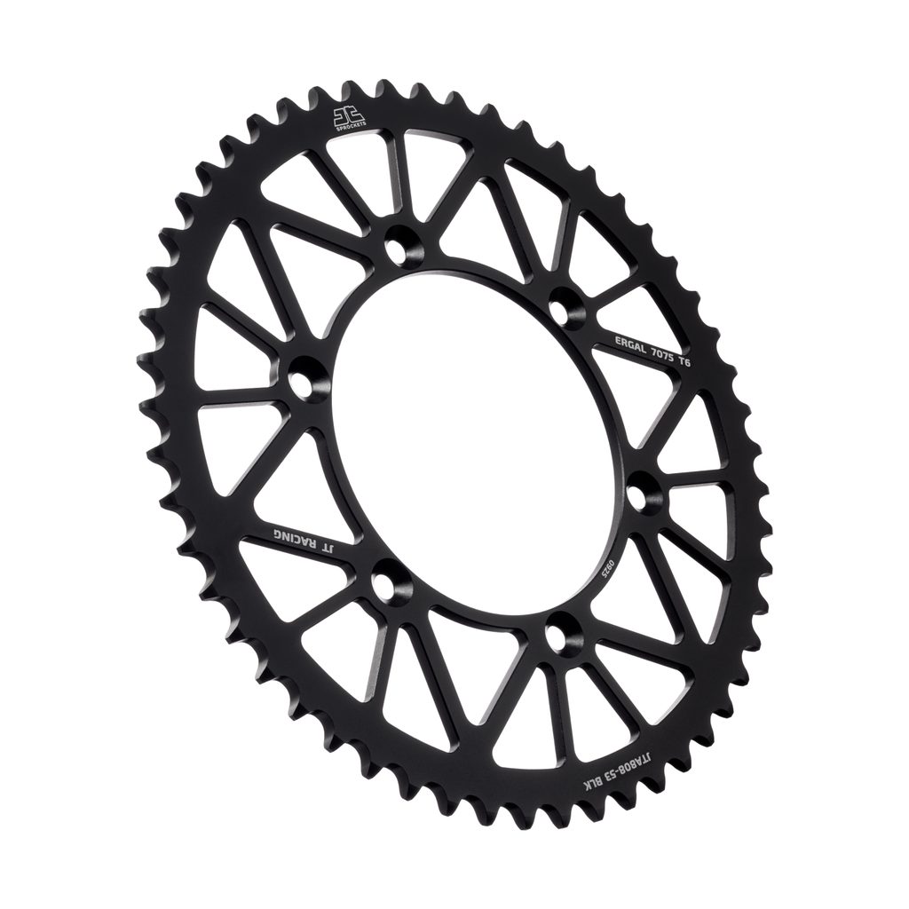 JT sprockets are made using only the best available materials. Aviation-grade 7075-T6 aluminium alloy for lightweight competition sprockets, SCM420 chromoly steel alloy for front sprockets, and we are the only sprocket manufacturer using the ultra-durable high carbon C49 steel for rear sprockets.