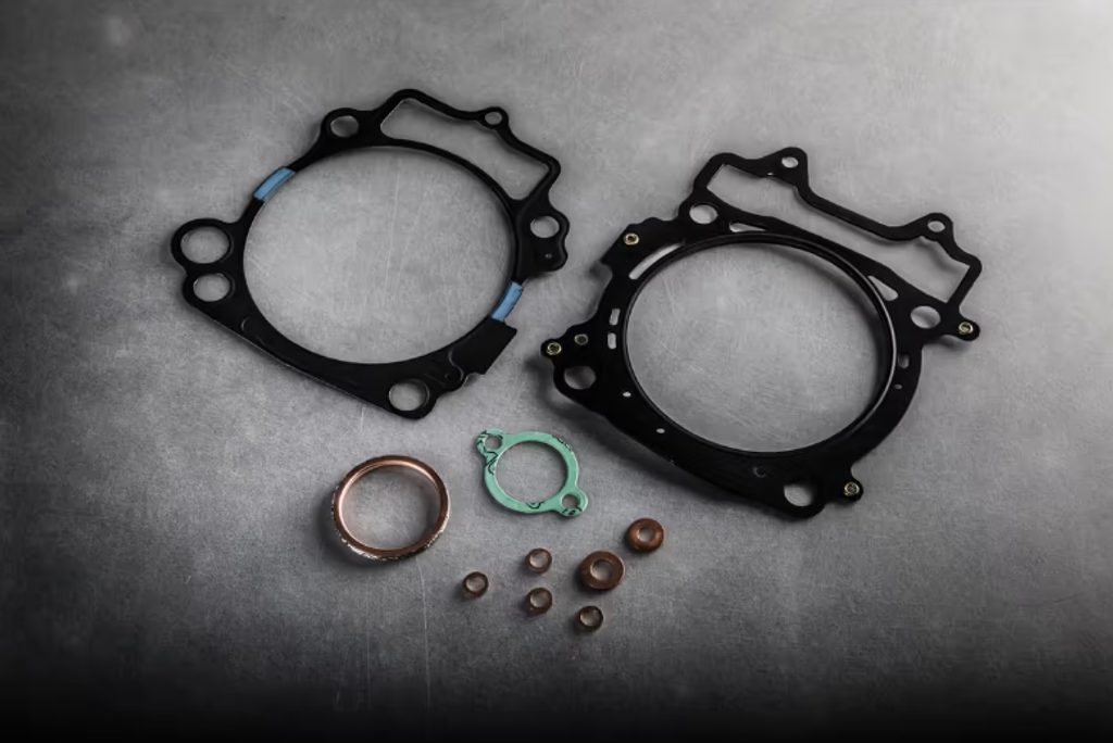 The rubber-coated metal base gasket features silicon creasing in critical areas on its surface that R&D engineers identified during the design phase. The creasing is near the crankcase joints and is ideal for preventing liquid leakage.