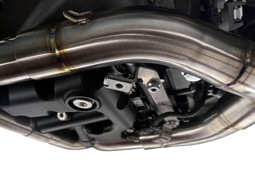 This fully titanium decatalyst manifold with visible TIG welding guarantees a weight saving of one-third compared to the original and also matches the original muffler. The catalytic converter is removed to maximize performance, which means it cannot be used for overhauls.