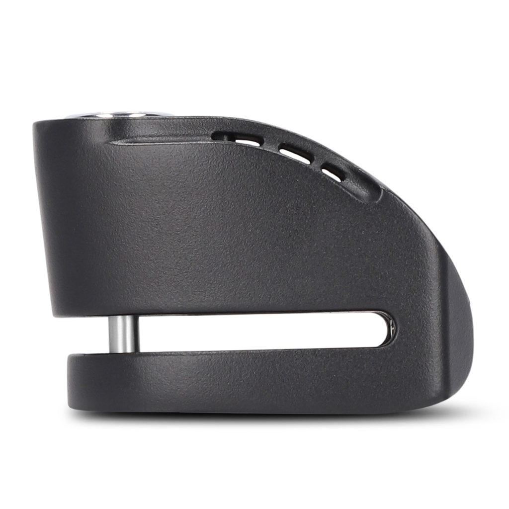 The SC61A disc lock has an integrated 120dB alarm with shock and motion sensors, powered by a CR2 lithium battery and with on/off option.