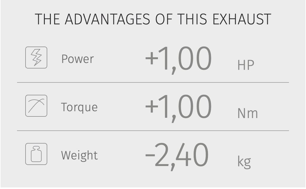 The new muffler also focuses heavily on lightness: if compared to OEM exhausts, the weight saving is really significant, helping to improve the driving feeling.
