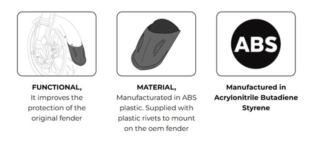 Give more protection to your motorcycle with the front fender extension from PUIG. The extension is made of ABS material which is highly resistant to impacts, it will be the ideal protection to prevent debris coming from the front wheel and impacting the body of your motorcycle or directly against you. The extension comes in black finish to match the look of your motorcycle.