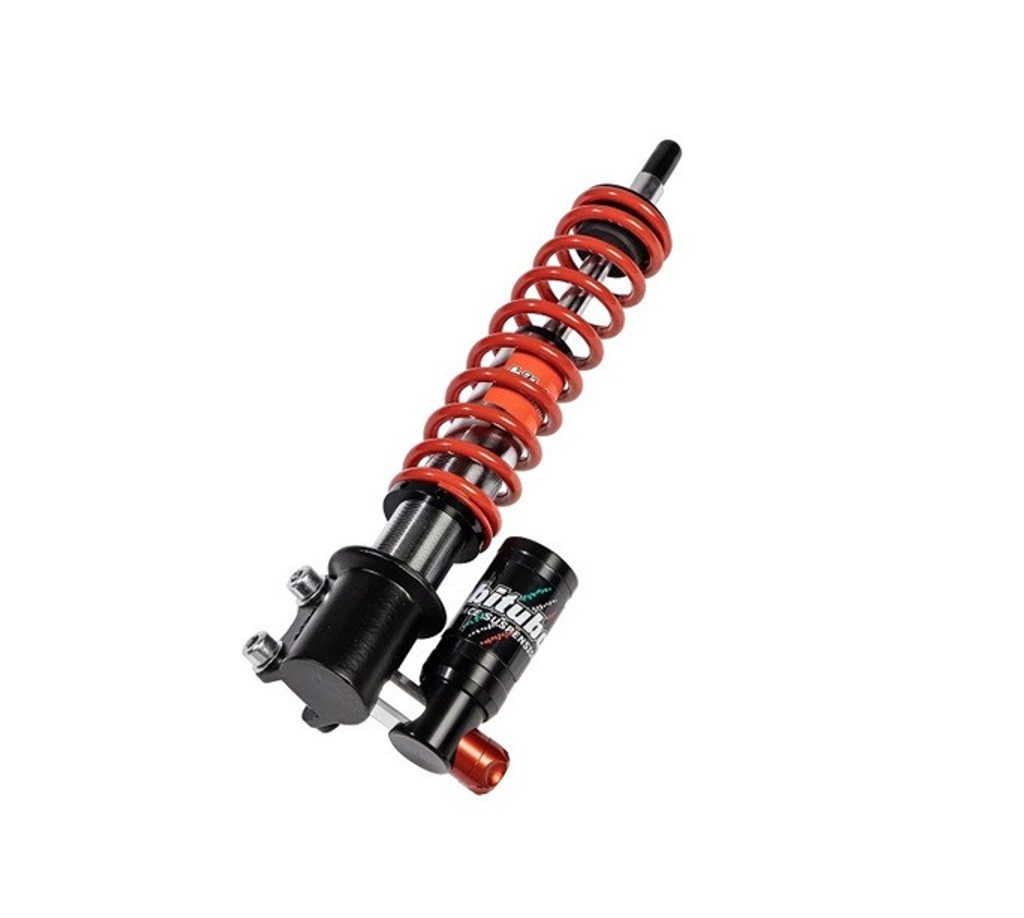 TECHNICAL FEATURES: Gas (Nitrogen) pressurized shocks with separate compensation tank represent the evolution of BITUBO’s experience gathered in race tracks.The lower attachment and the compensation tank, manufactured in aluminium alloy, offer a specific “satin black” finish, which has been chosen not only to give a modern and aggressive “look”, but also for its wear resistance and antioxidant agent.