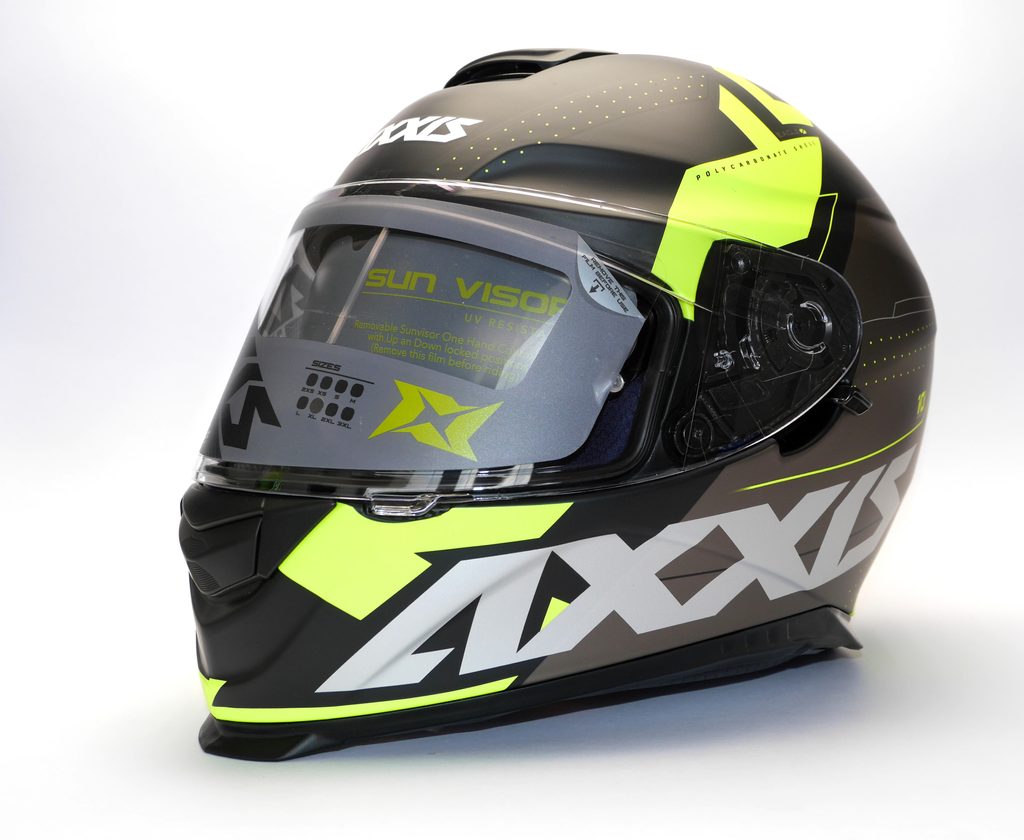 Integral helmet helmet has an ECE, DOT injected thermoplastic shell. Front and rear air intake system, removable and washable interior pads. Included sun visor. The full-face helmet for use both in the city and on the road. Glasses easy fit.