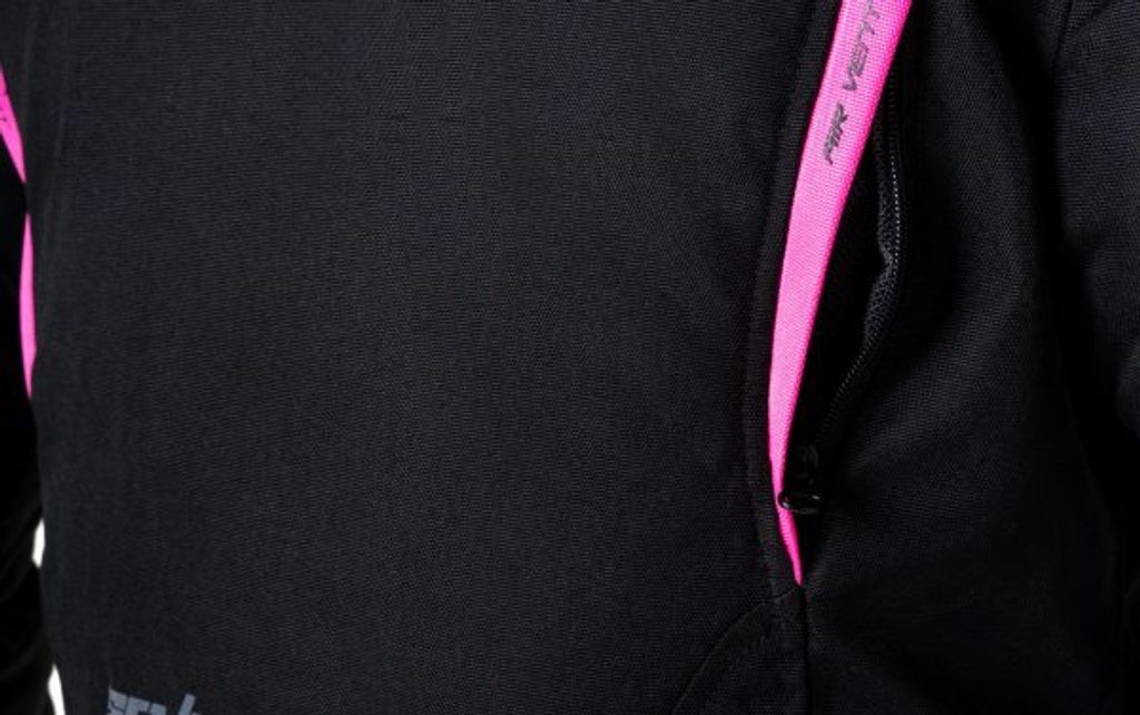 Mid-season Touring jacket for women. Filled with Prilation 75gr. Waterproof fabric. Made of high density polyester 600D. Ventilation zippers on front, back and arms. YKK main zipper and YKK and MAX secondary zippers. Button-adjustable arms. Velcro collar and cuff closures. Neoprene comfort collar with front padding. Adjustable waist. Removable CE-approved (EN1621) level 1 elbow and shoulder protectors. The protections can be replaced by Seventy Degrees level 2 protections (EN1621). Interior pocket for back protector (not included) level 2 SD-A10 certified to EN1621 standards