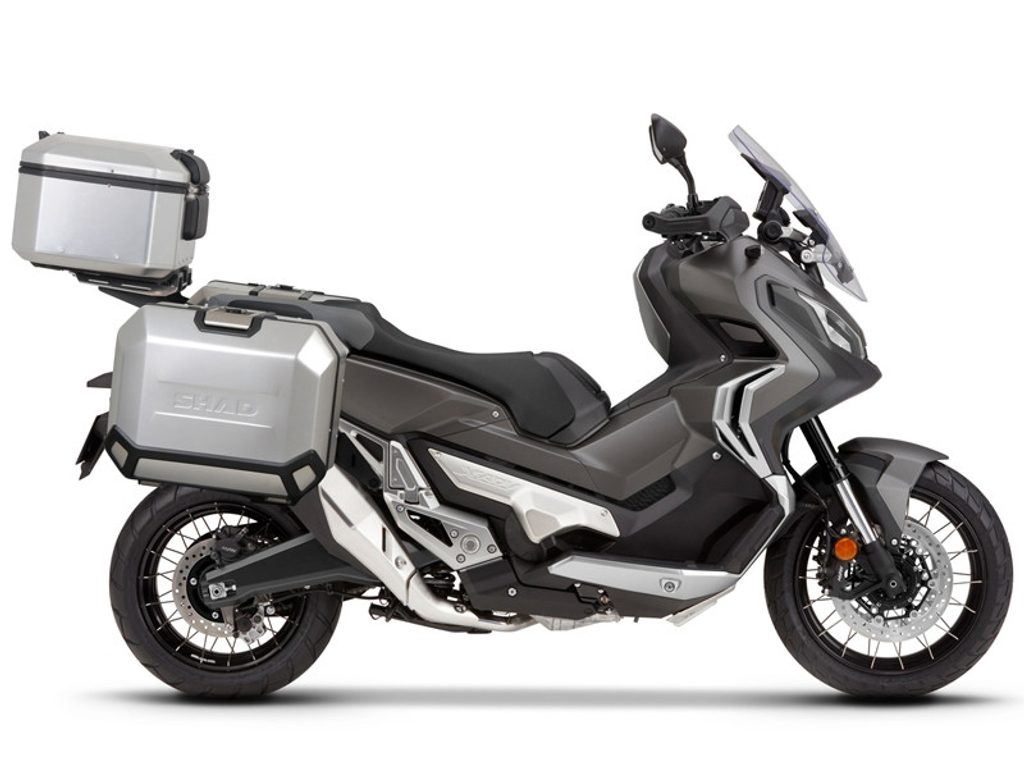 Komplet aluminijastih kovčkov z nosilci in ploščo SHAD TERRA, 37L zadnji kovček in 36L stranski kovčki SHAD HONDA X-ADV 750