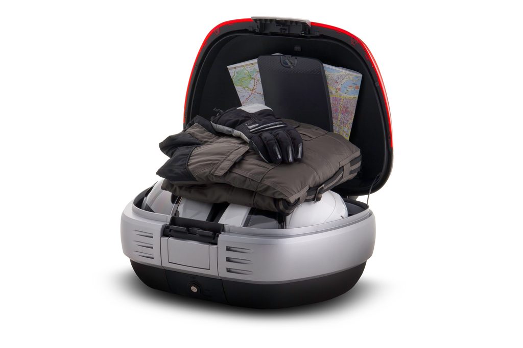 The SH50 is a robust and elegant motorcycle top case, ideal for those who love long trips. The top case has capacity to hold up to 2 full-face helmets (50L) without having to lay them on the side, plus travel accessories.