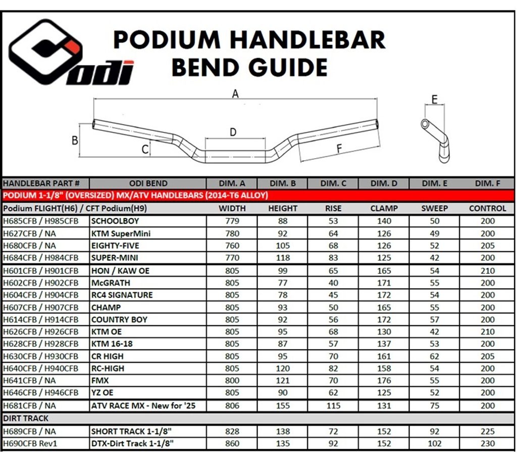 ThePodium FLIGHT MX Handlebars are the latest in the development of our MX handlebar technology. With our own tubing profile and design we've created a non-braced handlebar that has already proven worthy of race wins. The Podium Flight bar is constructed of a 2014-T6 alloy to provide added strength. Focusing more on racers and those riders looking for theperfect balancebetweenstrength and style. The Podium Flight has been vigorously tested by in every discipline of the highest level of racing; from supercross and motocross to Flattrack, Hillclimb and ATV racers!