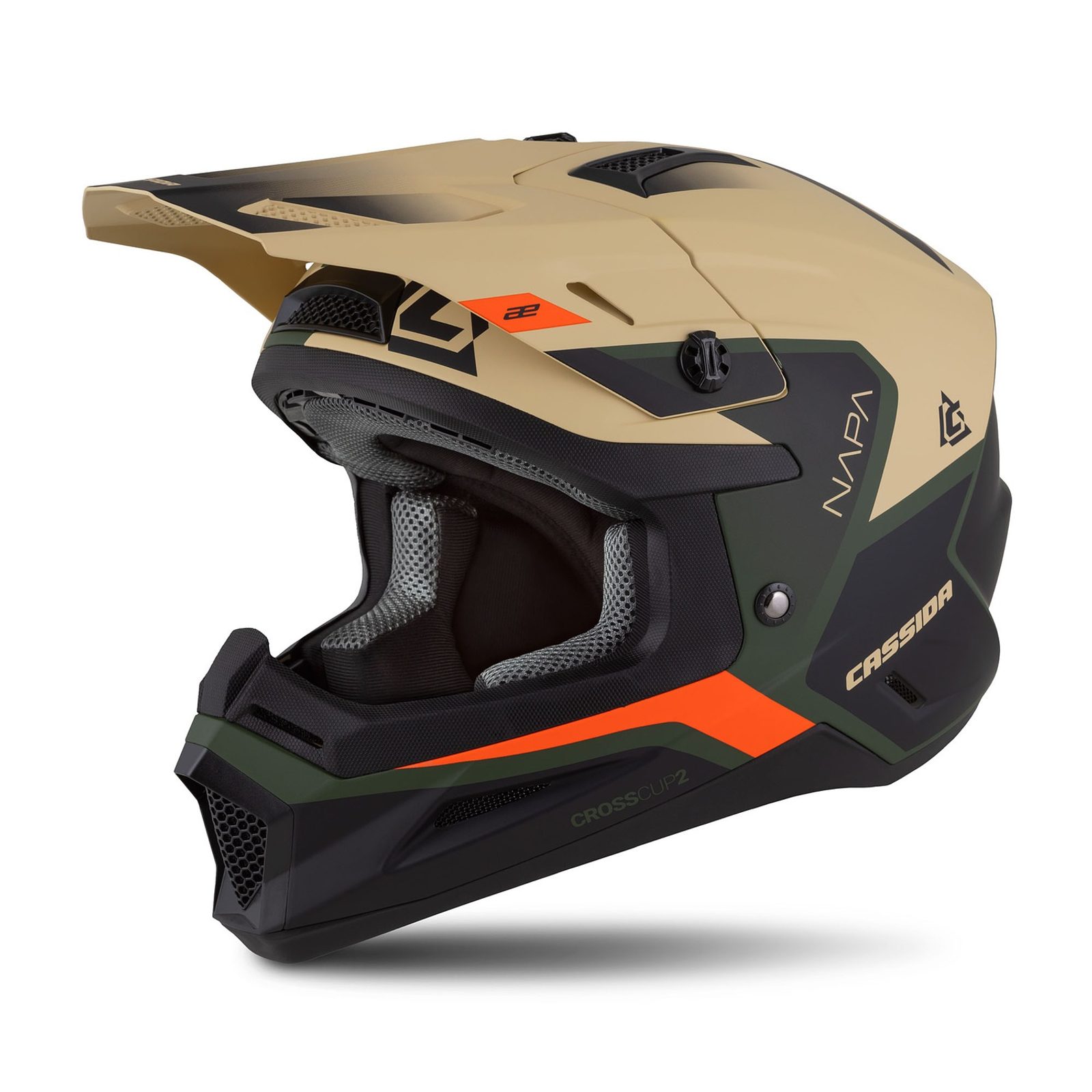 Motocross Helmet CASSIDA CROSS CUP 2 NAPA sand/ green/ orange/ black matt S