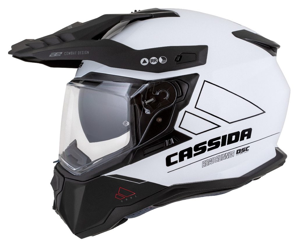 Motocross Helmet CASSIDA ROAD RUNNER DUAL white/ black/ black matt peak L