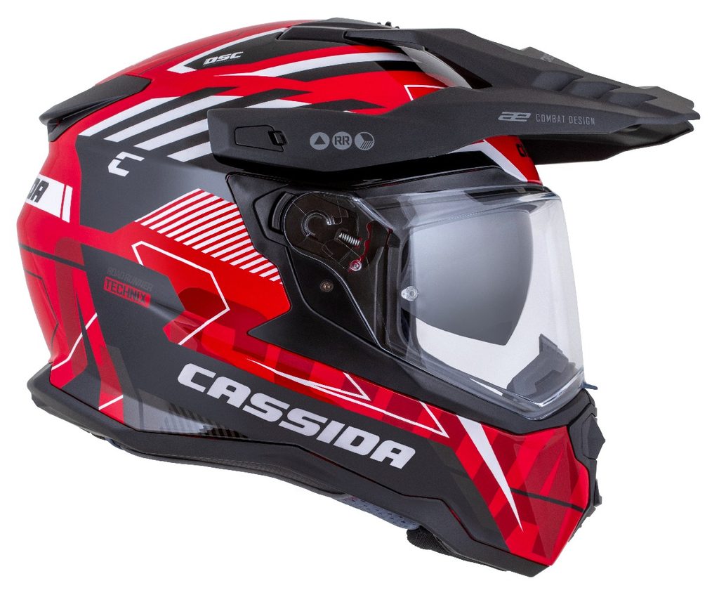 Motocross Helmet CASSIDA ROAD RUNNER TechniX red/ black/ white/ grey/ black matt peak M