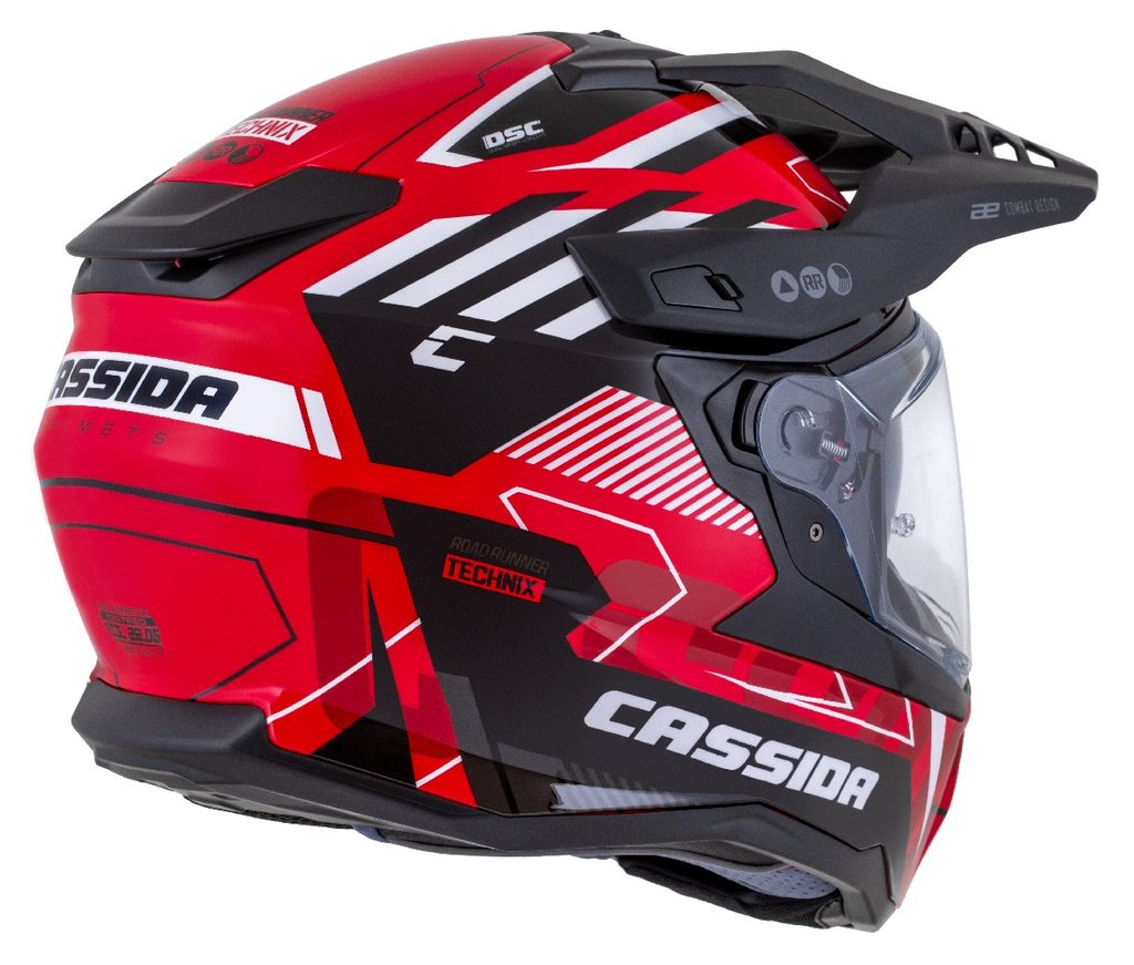 The Road Runner Helmet is a full-face helmet with a plastic shell and a removable peak, primarily aimed at riders of road-focused adventure and touring enduro motorcycles.