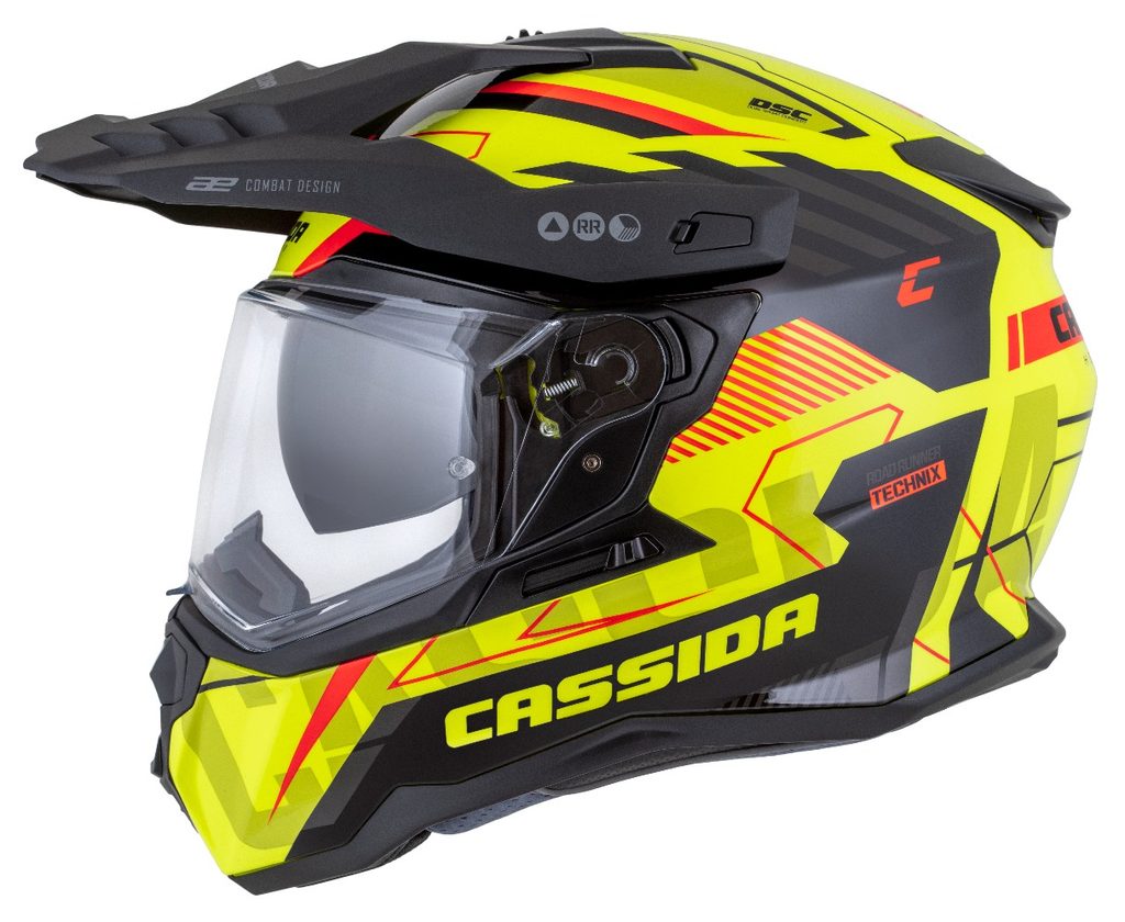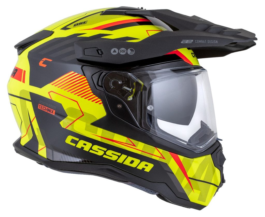 Motocross Helmet CASSIDA ROAD RUNNER TechniX yellow fluo/ black/ orange/ grey/ black matt peak L