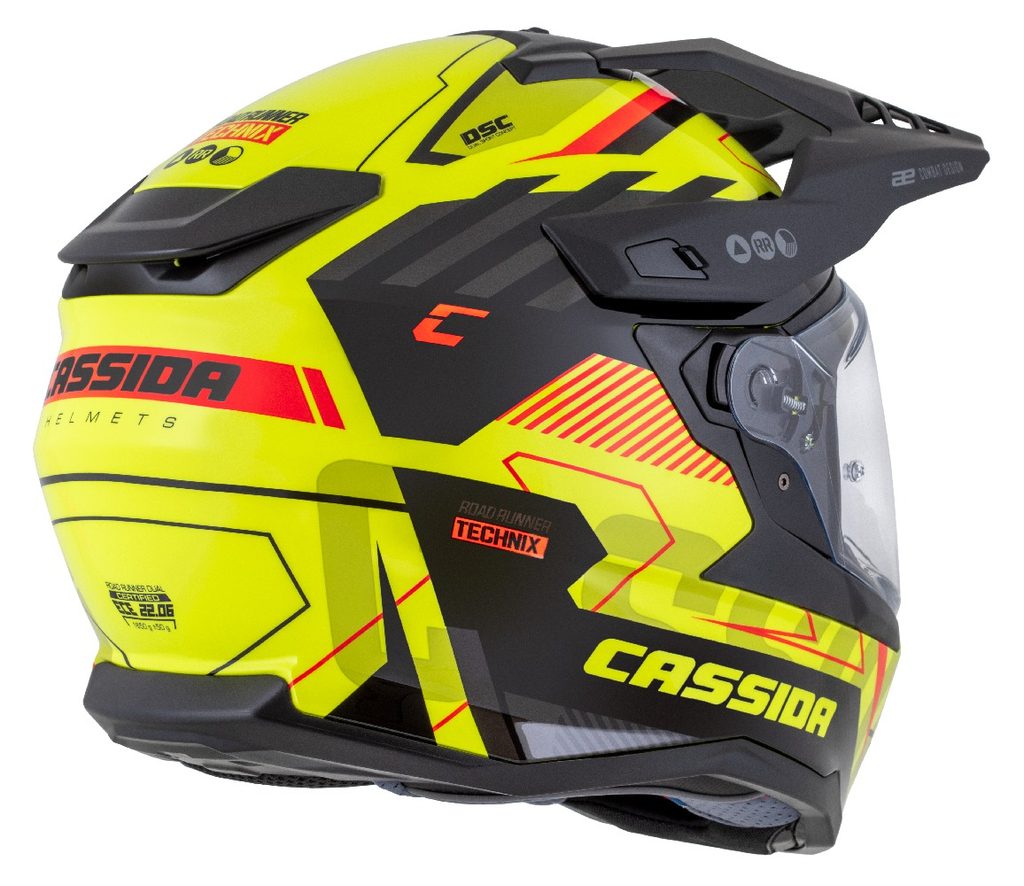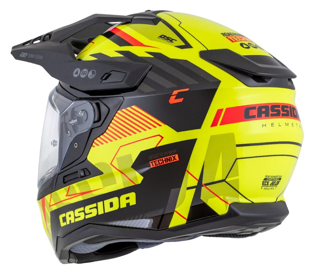 The Road Runner Helmet is a full-face helmet with a plastic shell and a removable peak, primarily designed for owners of road-oriented adventure and touring enduro motorcycles.