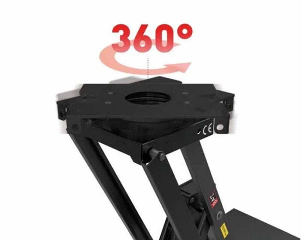 The LV8 Goldrake Off Road lift is equipped with a 360° rotating table that provides total accessibility to the vehicle during maintenance operations.
