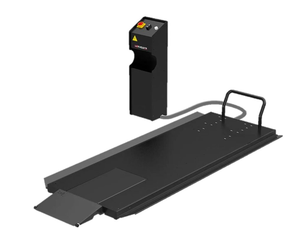 The Nano 600 Split (also in ground version) motorcycle lift designed and produced in LV8, thanks to its being only 7,5 cm (3”) high when closed and its retractable ramp it is the lowest and most safe motorcycle lift in the world. It is provided with front split system for easy disassembly of wheels and suspensions.