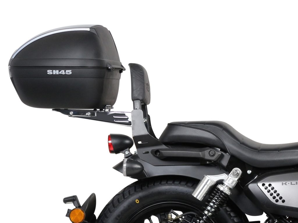For fitting a top case on a custom motorcycle it is necessary to fix the sissybar, and then later to adapt the universal chromed rack, reference NADTN.