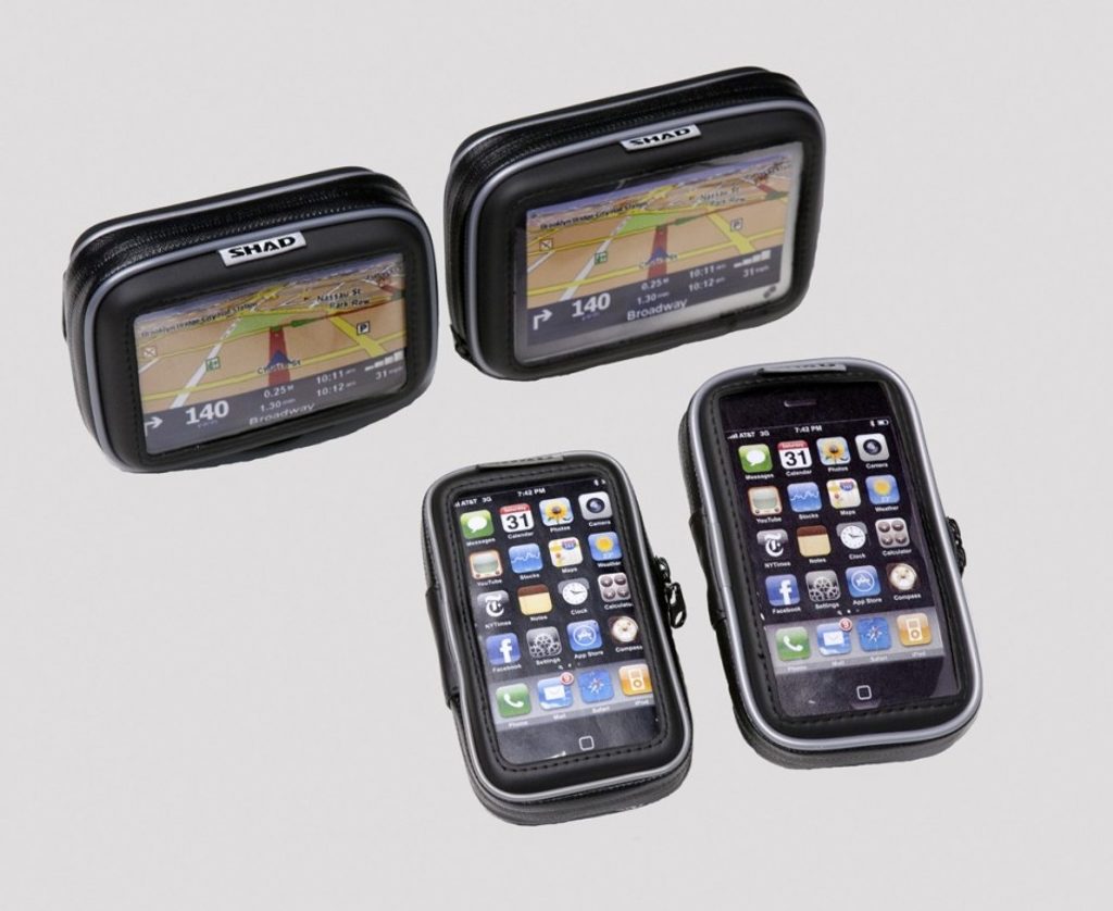 Your GPS is carried in an extremely sturdy, practical case whose interior is lined with knock-proof material. Depending on the version, the holder can be fixed either to the handlebar or the mirror simply and quickly, thanks to a practical, adjustable bracket. Since the base can be rotated 360°, you can position the screen at the visual angle that is just right for you. The waterproof case and zips enable the case to be used in any weather, and your touch screen display is completely functional through the special crystal film window.