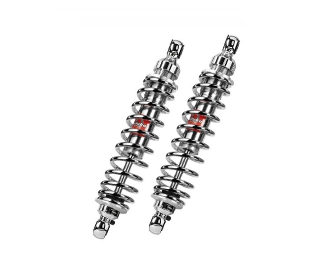 Twin rear shocks with same design of "WME0", this shock has shorter lenght of the original, adress to whom want a lower setting of his own bike. Depending on specific application, the lower adjustment may change, please see Catalogue 2017, section "application list" to check right lowering size in mm. Available in colour range "42V2" total black for more classic looks, and "43" all chrome version.