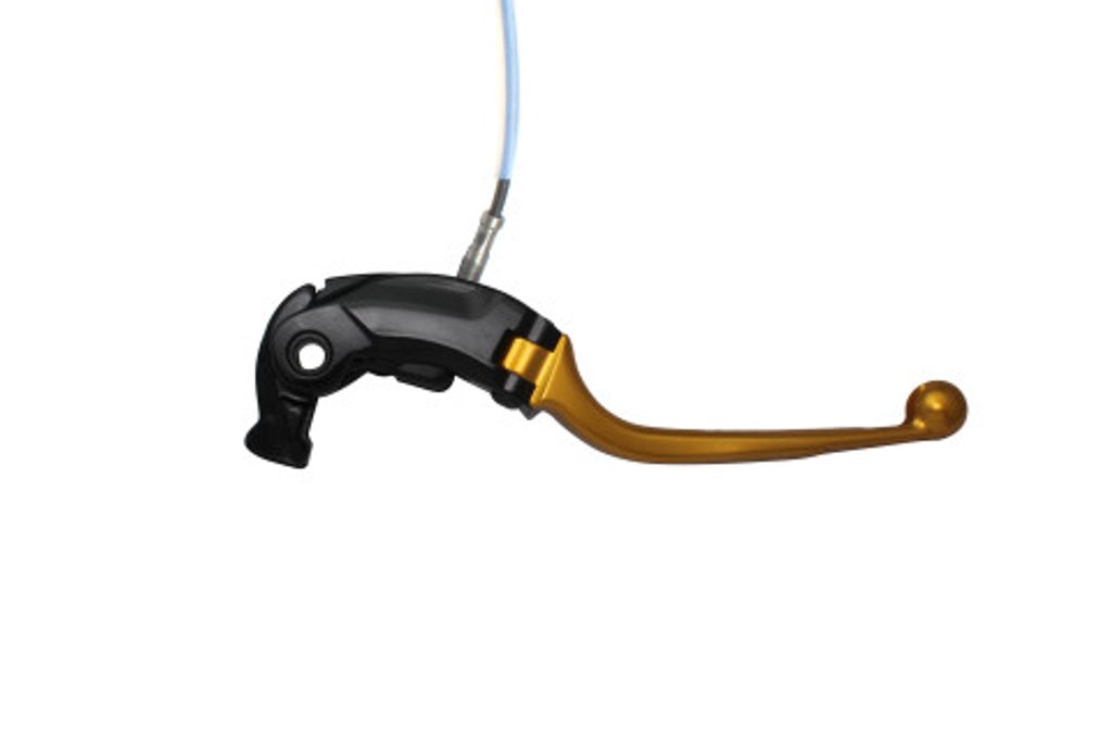 Folding brake lever with integrated adjuster, for Nissin radial master cylinders. It is made in aluminium, CNC worked and anodyzed in 7 different colu