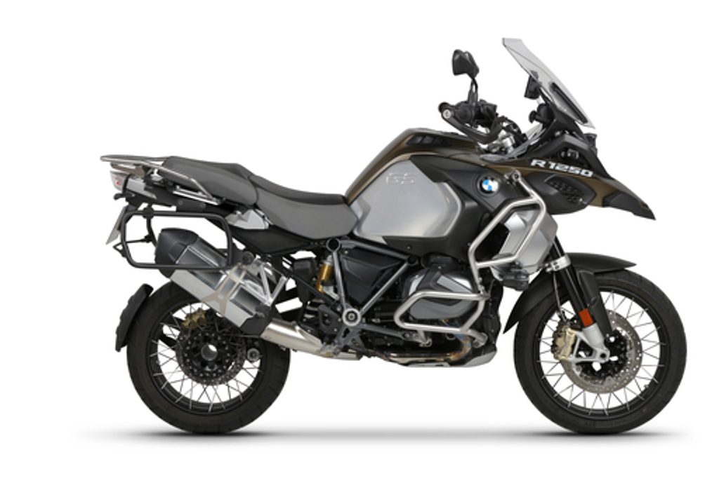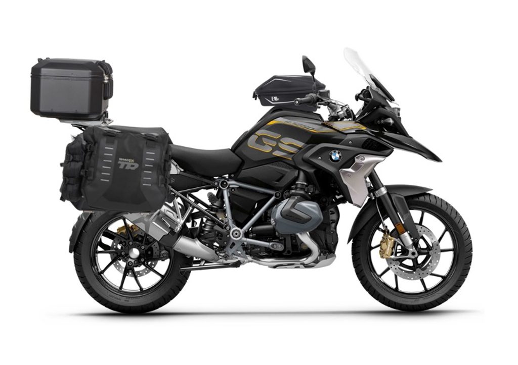 Set of SHAD TERRA TR40 adventure saddlebags and SHAD TERRA aluminium top case TR55 PURE BLACK, including mounting kit SHAD BMW R1200/R1250GS ADVENTURE