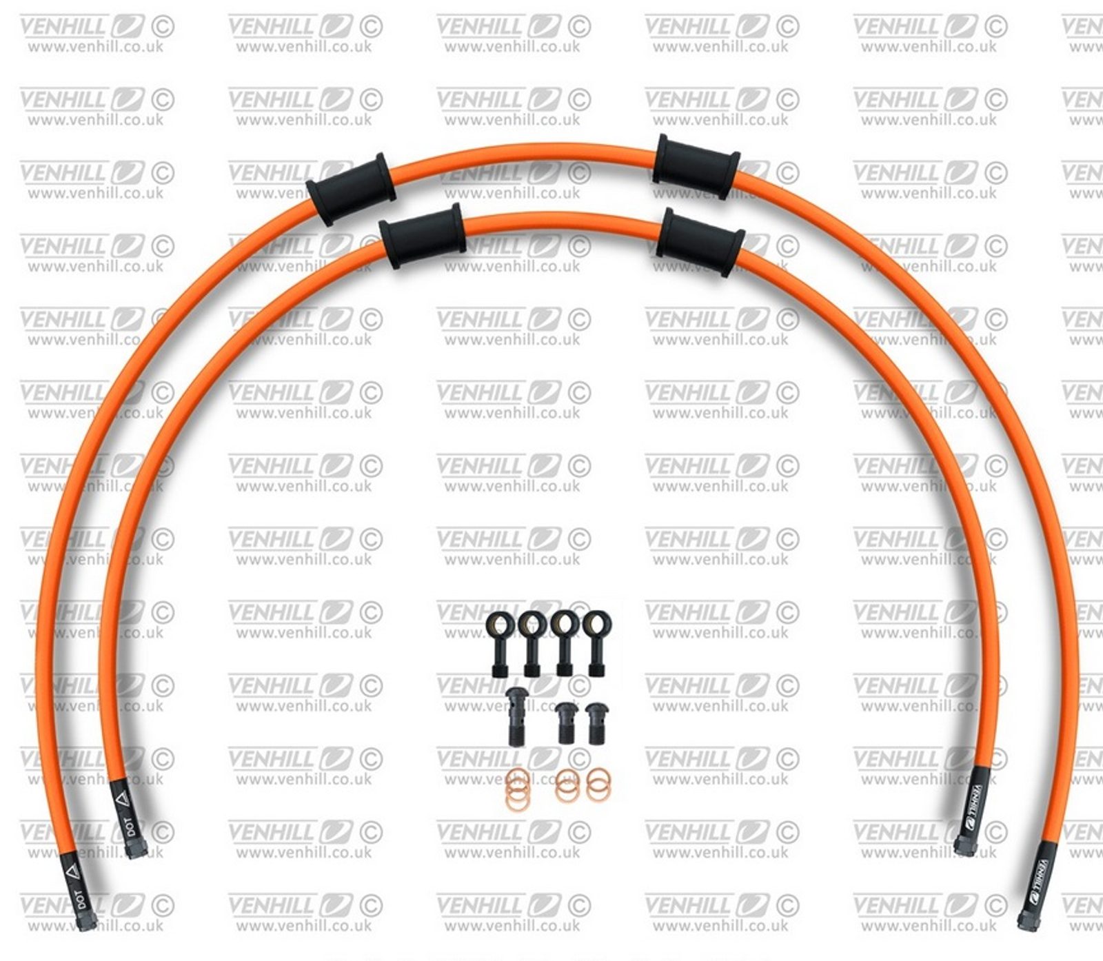 Set zadnjih zavornih cevi Venhill POWERHOSEPLUS DUC-9005RB-OR (2 cevi v kompletu) Orange hoses, black fittings