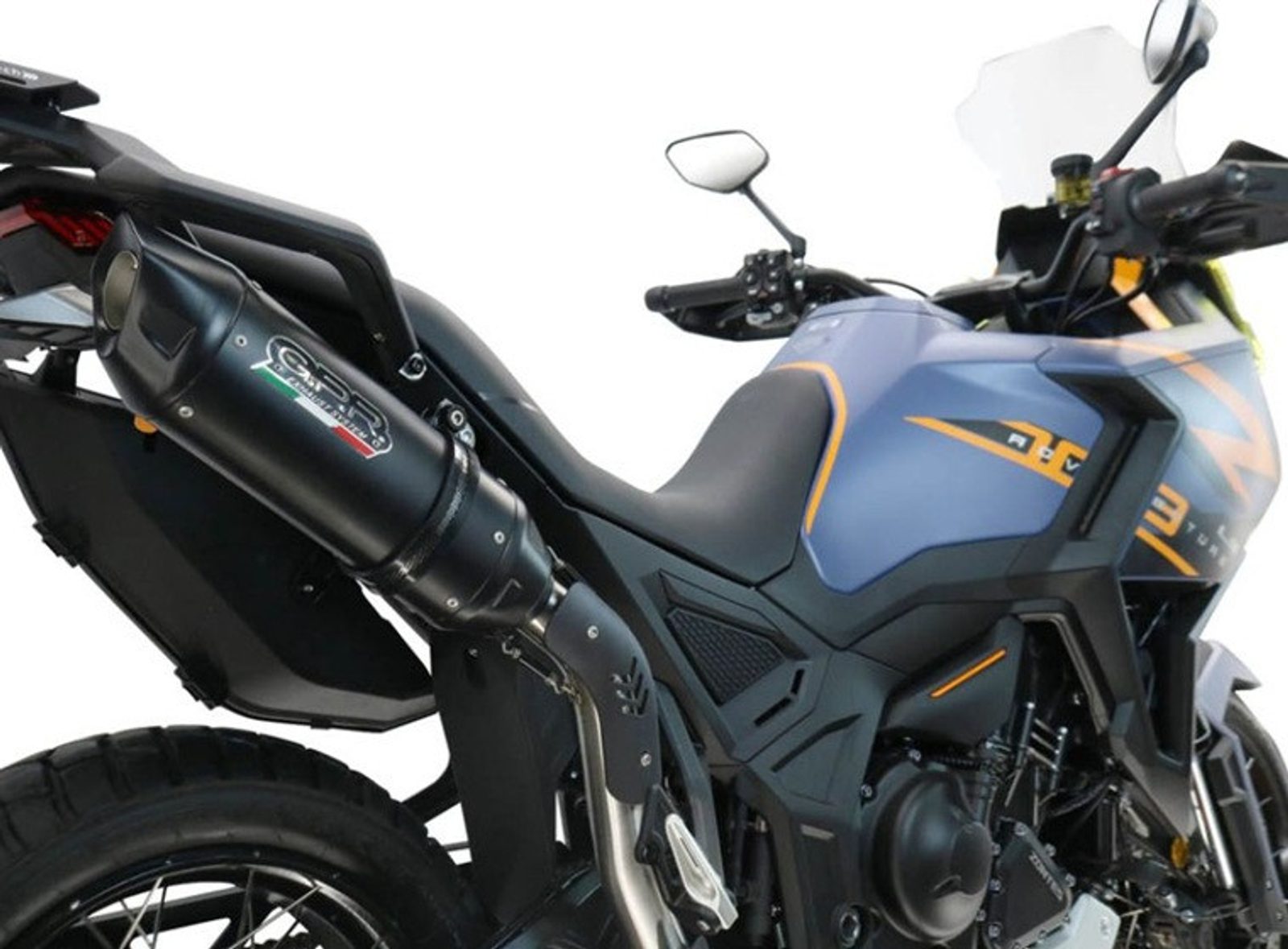 Silencer Furore-X Black Titanium serie, it is made with an oval-shaped body diam. 90mm x 130mm in titanium with a thickness of 0.8mm and a perforated INOX inside tube sp. 0.8mm. The bottoms are conicals, equipped with dbkiller and specific anchoring bracket, it is an extremely light item, it's hyper-performing, with a modern design and a deep but not invasive sound in compliance with the legal limits. Hyper Furore has been developed thanks to investments in the Moto2 and Moto3 world championships and is one of the new GPR designs in collection.