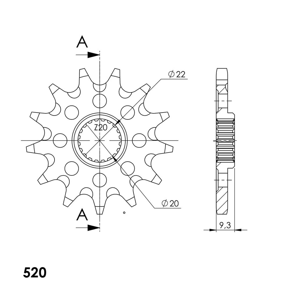 Every sprocket has weight reduction, with radial holes or radial slots (Forged models only) .