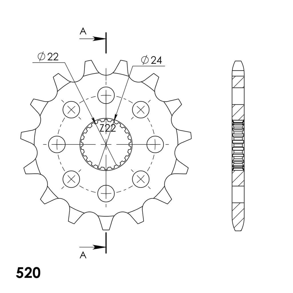 Every sprocket has weight reduction, with radial holes or radial slots (Forged models only) .