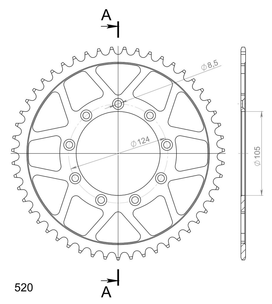 Stronger teeth for up to 10% longer chainkit lifetime. Rear sprocket 51z, chain 520. Več informacij