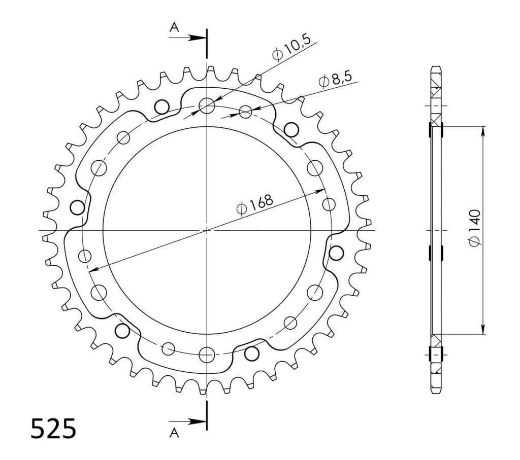 Zadnji verižnik (zobnik) SUPERSPROX STEALTH RST-6:42-BLK črna 42T, 525
