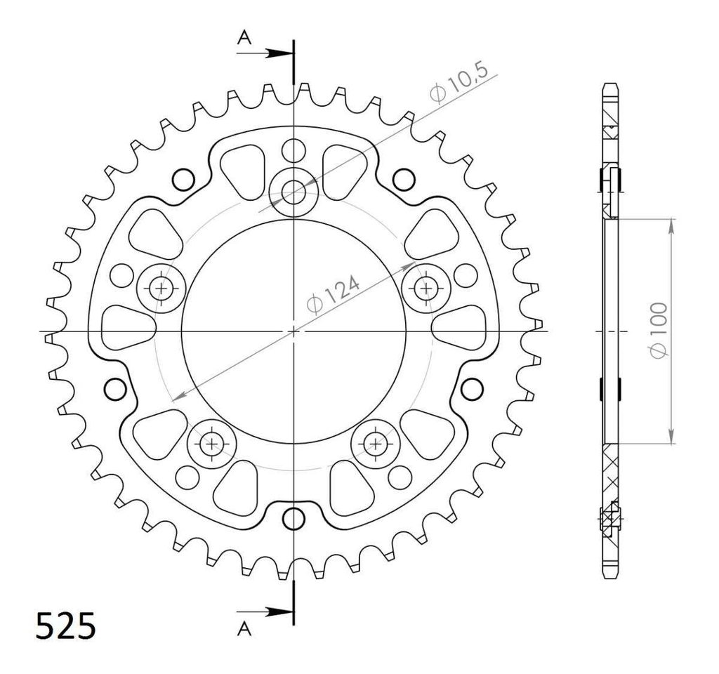 Zadnji verižnik (zobnik) SUPERSPROX STEALTH RST-744:42-BLK črna 42T, 525