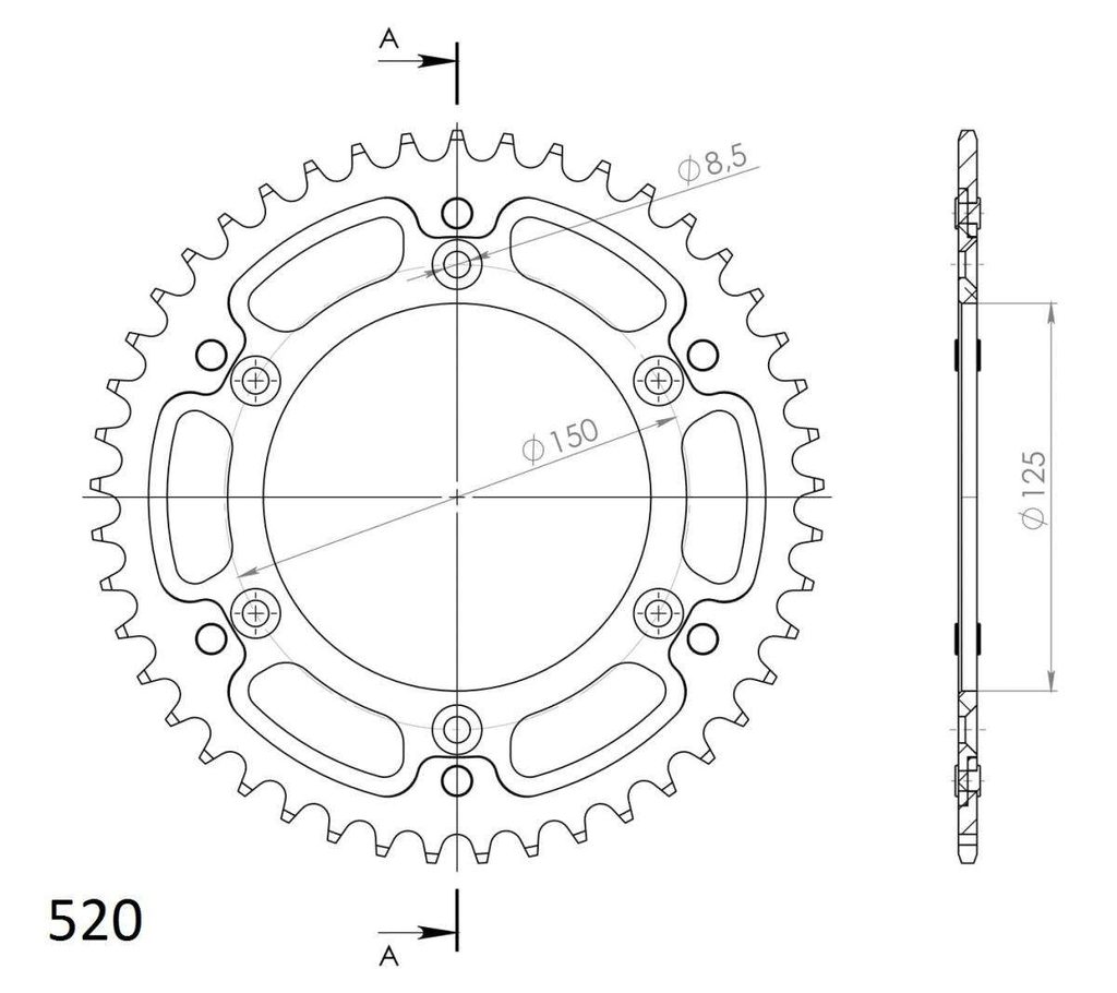 Patented Supersprox longlife/lightweight solution with strongest bond on the market. 3-times longer lifetime than TOP quality aluminium sprocket.