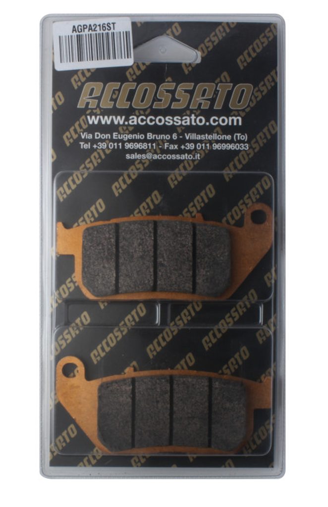 Accossato Brake Pad AGPA216 (dimensions 101.6x45.4x8.9). Brake pads kit available in SINTERED compound for guarantee a high and costant grip level at